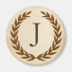 A delicate laurel wreath is layered over a parchment paper background in the classic Roman style. This design is personalised with the monogram "J" in a rich sienna tone.