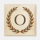 A delicate laurel wreath is layered over a parchment paper background in the classic Roman style. This design is personalised with the monogram "O" in a rich sienna tone.