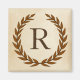 A delicate laurel wreath is layered over a parchment paper background in the classic Roman style. This design is personalised with the monogram "R" in a rich sienna tone.