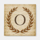 A delicate laurel wreath is layered over a vintage sheet music background in the classic Roman style. This design is personalised with the monogram "O" in a rich sienna tone.