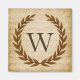 A delicate laurel wreath is layered over a vintage sheet music background in the classic Roman style. This design is personalised with the monogram "W" in a rich sienna tone.
