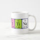 Laurestine spelled out as La U Re S Ti Ne (Lanthanum Uranium Rhenium Sulfur Titanium Neon) on a mug for the scientist in you.