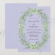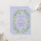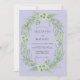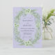 This design showcases a soft lavender background encircled by a wreath of abundant greenery. Intricate ferns, eucalyptus, and mixed leafy stems create a lush, organic border. Small white blossoms are scattered throughout the foliage, providing a delicate and fresh contrast to the muted purple palette. This nature-centred aesthetic evokes a sense of springtime vitality and elegant tranquillity.