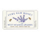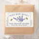 Pale ivory label with a blue dotted border and vintage lavender illustration with bees. Blue Text