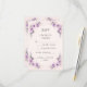 Celebrate your special day with this dreamy watercolor wedding RSVP card. Lush arrangements of lavender roses with a blush background, accented with hints of greenery, appear as if hand-painted across the card. The soft, textured artwork creates a serene and feminine aesthetic, while a modern, clean-lined text layout provides a polished contrast. Paired with a lilac or blush envelope and an optional ribbon belly band, this suite sets a whimsical and romantic tone for your guests.. This wedding invitation is part of a complete set.