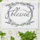 A romantic and elegant design featuring the word “blessed” framed by eucalyptus and lavender painted in watercolor.