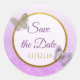Personalised Wedding Date, Save the Date, lavender and gold butterflies wedding stickers.