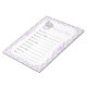 Lavender and Grey Elephant Baby Shower - Wishes for Baby Notepad. 100% Customisable. Ready to Fill in the box(es) or Click on the CUSTOMIZE button to add, move, delete, resize or change any of the font or graphics. Made with high resolution vector and/or digital graphics for a professional print. NOTE: (THIS IS A PRINT. All zazzle product designs are "prints" unless otherwise stated under "About This Product" area) The design will be printed EXACTLY like you see it on the screen and on the product...so please make sure when you do your changes on the resizing of any of the graphics or text that it fits in the areas correctly and that your spelling and wording is how you like it to be in size, colour and font. If you have any questions about this design please contact me at siggyscott@comcast.net or visit my store link: http://www.zazzle.com/designsbydonnasiggy?rf=238713599140281212 (Copy and Paste) I'll be happy to help. Thank you for the support and stopping by my store - DesignsbyDonnaSiggy. © Donna Siegrist