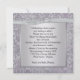 A very elegant lavender and silver 25th Wedding Anniversary invitation with just a hint of "grunge" - you can't go wrong with this colour combination. If you'd like the design on something not featured, I'm only an email away. I answer all emails within 24 hours. Personalise with your own information - to move the text or change the font or colour, click Customise It. Please email me at shutterbug600@yahoo.com if you need help.