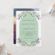 A white and sage green background decorated with purple lavender flowers, eucalyptus greenery and an arch frame. Personalise and your names and details.