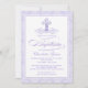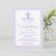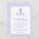 Lavendr baptism invitation with lavender pearl cross and elegant script on a pretty lavender damask background. This elegant lavender purple damask baptism invitation is easily customised for your event by simply adding your details in the font style and colour, and wording of your choice.