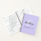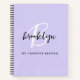This personalised recipe notebook features a monogram and first name in modern black and white script on a lavender background, with the additional text in black sans serif font below.
