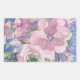 A spray of watercolor flowers in shades of blue, lavender, pink and violet is backed by brushstrokes of metallic gold and a rich dark blue background. The top and lower righthand corners have a dusting of blue glitter to add a touch of whimsy.