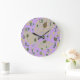 This botanical wall clock is cheery in its lavender face with leaf decoration