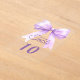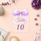 Personalize and your table numbers one by one. A clear background decorated with a large lavender colored bow.
