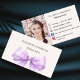 Lavender, blush purple coloured background, decorated with a large pink bow. Add your name, photo and the details.