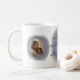 This lavender mug blends two photo panels, a personal name, and a quiet silhouette. Featuring the poetic phrase 'Lavender hush crowns gentle hearts with quiet dreams', it makes a heartfelt gift for any Cavalier King Charles Spaniel fan.