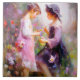 Two girls in a flower garden, admiring a lavender flower. Great for nursery art.