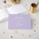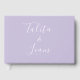This lovely wedding guest book features a set of contemporary fonts in white against a soft purple lavender colour. The design includes additional couple initials and date at the back. Stylish and chic, this wedding guestbook matches the stationary in the full collection.