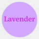The word Lavender is printed in lavender on a light lavender background, on stickers.