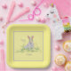 Lavender Easter Bunny Yellow Background Square Pa Paper Plate