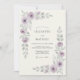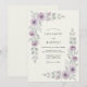 This design features delicate watercolor roses in soft shades of lavender and lilac, paired with muted sage green foliage. The artistic arrangement creates an airy and romantic aesthetic perfect for a springtime event. A clean off-white background enhances the elegant botanical details for a timeless and sophisticated feel.