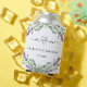 A white background. Decorated with lavender flowers and eucalyptus greenery. Mr and Mrs with a heart. Personalise and add your names and the wedding date.