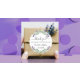 A stylish white background decorated with lavender flowers and eucalyptus greenery. Personalise and add your names and wedding date. With the text: Thank you for sharing our special day.