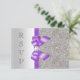 Personalised wedding RSVP flat cards / invitations. Elegant custom silver and lavender colour double sided response cards with a beautiful sparkly printed glitter sequins pattern, cute shiny printed graphics vector bows and ribbons and pretty, stylish printed image diamonds bling jewels and purple font. These classy glamourous, fashionable, vibrant, lilac, lavender, purple and silver rsvps are decorated on both sides. Beautiful, chic, trendy, modern double sided cards with glitz and glamour. Please note: All invites on Zazzle have flat printed graphics - not real bows, jewels or sequins. I have matching products for weddings in my store. Text, font and colours of font are all personalizable / personalisable to meet your needs. If you need assistance customising your product please contact me through my store. I will be happy to help.PLEASE NOTE:- All invitations on Zazzle have flat printed images.