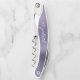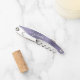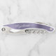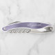 This distinctive personalised corkscrew features a modern lavender brushed metal background. Customise it with a name in white cursive handwriting-style script.