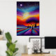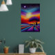 Aesthetic oil painting poster of a romantic lavender field in the Provence in France by night. Colourful landscape wall art for your Living Room.