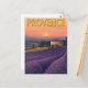 This beautiful card features a vintage-style illustration of the rolling lavender fields of Provence, France, at sunset. The design captures a classic scene of a traditional stone building nestled among the vibrant purple rows, with cypress trees and hills in the background. The warm, golden hour light and retro typography give it the feel of a timeless travel poster. It's the perfect card for a note from your travels or a gift for a nature and art lover.