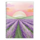 Immerse yourself in a soothing lavender field at sunset with this calming notebook cover. Soft pastel pink and orange skies stretch across the horizon while a gentle breeze rustles the lavender blooms. Perfect for wellness and self-care journalling, this design evokes peace and relaxation.