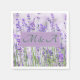 Cocktail napkins with soft lavender and green inspired by the beauty of countryside lavender flowers with custom names for your wedding celebration.