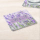 These square paper coasters with soft lavender and green inspired by the beauty of countryside lavender flowers have a location for custom names for your wedding celebration.