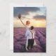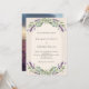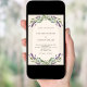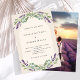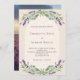 A beige background decorated with purple lavender flowers, eucalyptus greenery and an arch frame. Personalise and your names and details.