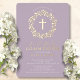 Beautiful Gold Foil First Communion invitations featuring a delicate floral wreath and cross set on a lavender background. Flip our invitation over to view a coordinating back for an extra special touch. Visit our shop to view our entire religious collection.