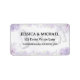 Complete your wedding stationery suite with these elegant "Return Address Labels," featuring a delicate watercolor lavender and purple floral design. Inspired by a romantic garden aesthetic, the layout showcases the names "JESSICA & MICHAEL" in a sophisticated gold-toned serif font, perfectly complementing the soft floral borders.