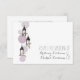 A wedding rsvp featuring an illustration of a group of lavender garden lanterns and lanterns filled with flower arrangements. Personalise the text on front and back.