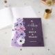 An elegant purple floral wedding guest book featuring soft watercolor flowers in lavender, blush, and white, accented with delicate botanical line art for a romantic and sophisticated look. The rich plum background and floral side border create a beautiful keepsake design, perfect for collecting heartfelt notes, signatures, and memories from your wedding guests. A lovely choice for couples creating a coordinated floral wedding décor and stationery suite.