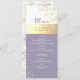 Vintage, botanical, rustic, calligraphy, modern, elegant dusty purple lavender wedding menu with gilded gold and silver floral lace.