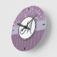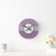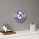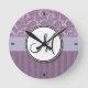Lavender Floral Wisps & Stripes with Monogram Round Clock