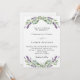 A white background decorated with lavender flowers and eucalyptus greenery. Personalise and your names and details.