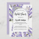 A stylish white background. Decorated with lavender floral, arch frame with bees. Personalise and add a name and details.