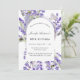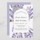 A stylish white background. Decorated with lavender floral arch frame with bees. Personalise and add a name and details.
