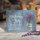 Rustic Lavender Floral Jar & Hummingbird Dusty Blue Barn Birthday Party Invitations.