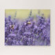 Jigsaw puzzle featuring beautiful photo of lavender flowers and bees.