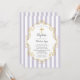 Pretty Baptism invitation featuring a lavender & white stripe background with a gold cross & frame for a girls Christening