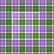 Fabric in lavender, green, and white plaid, with dark purple highlights. A Plaidwerx original pattern. Pattern repeats every 2". Special order larger scale via https://plaidwerx.com/contact.htm