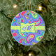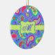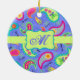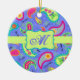 Add a splash of colour this ornament featuring a whimsy paisley design and personalised with your monogram, initials or name. The bold colours of this trendy paisley design features a periwinkle lavender background with a lime green strip and emblem for personalisation. Bright, fresh, modern paisleys make a beautiful artistic design that includes inspirational words of Love, Hope, Faith, Inspire, Cherish, Be Happy, Dream, and Live in the background between the paisleys. This Mod Paisley collection, designed by Phyllis Dobbs, uses the colours of teal, turquoise, lime green, wine, yellow, fuchsia and orange to create a fun and whimsey take on the traditional and popular paisley motif. The paisley motif is timeless in appeal but this original art is both trendy and contemporary. Fully customisable for personalisation with your own words to add your own message.